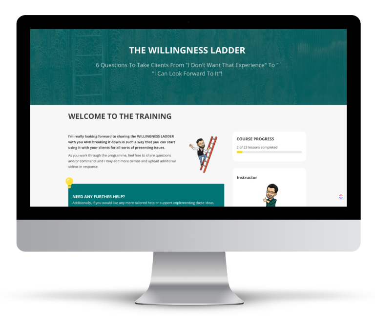 As a long time Hypnotherapist / Change worker, I was thrilled to have the opportunity to take Howard Cooper's online training course on "The Willingness Ladder". Howard's extensive experience and insights are well-known in the industry, and I was eager to see how his approach to achieving rapid shifts in thinking could enhance my own practice.